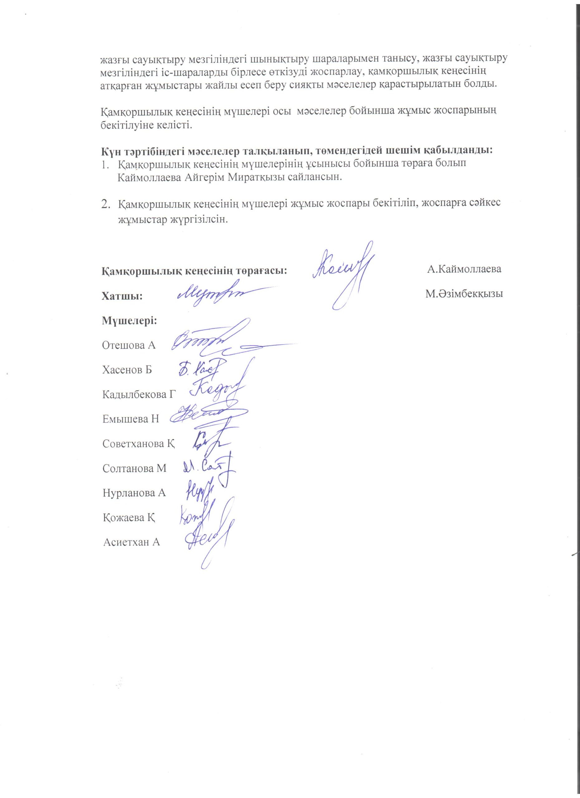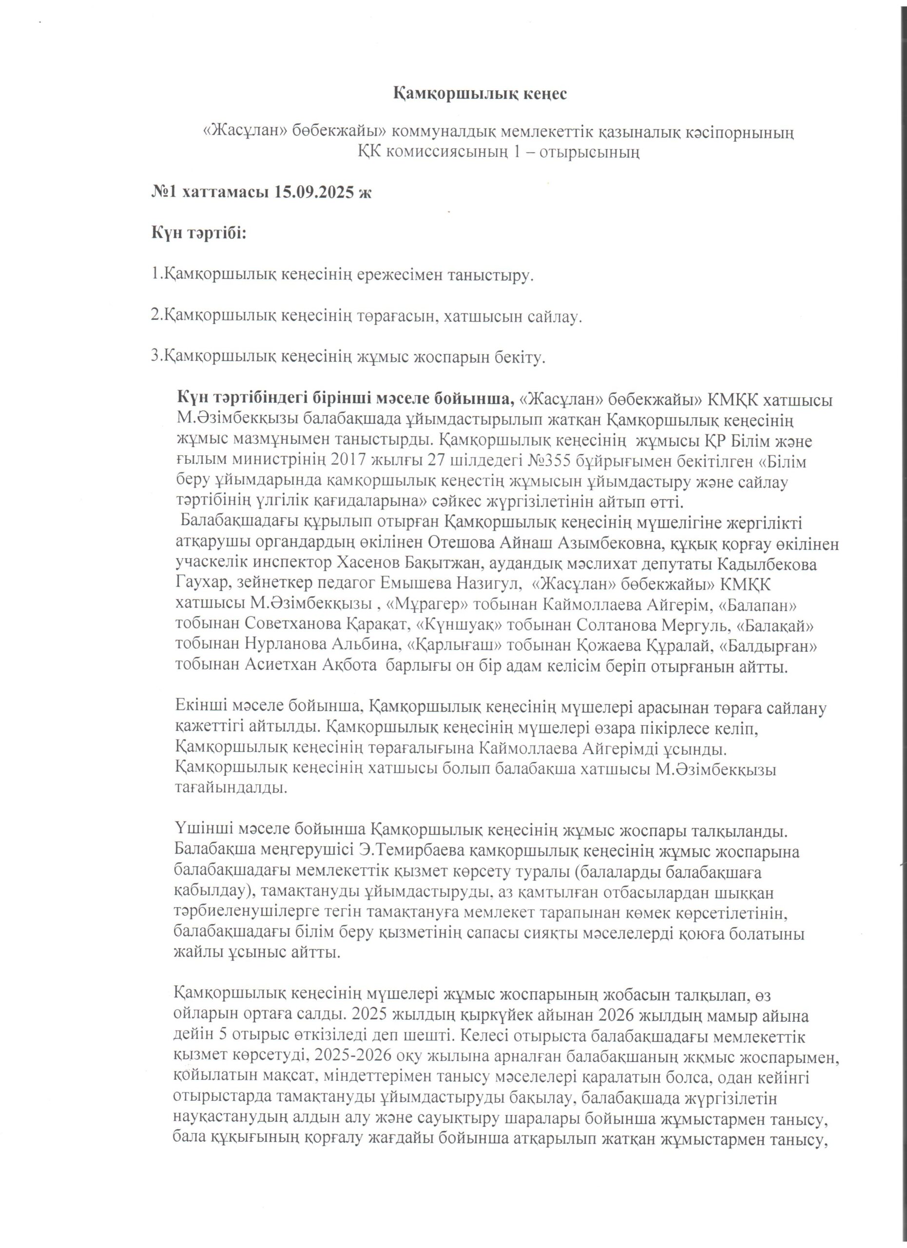 Қамқоршылық кеңес отырысының 1 хатамасы