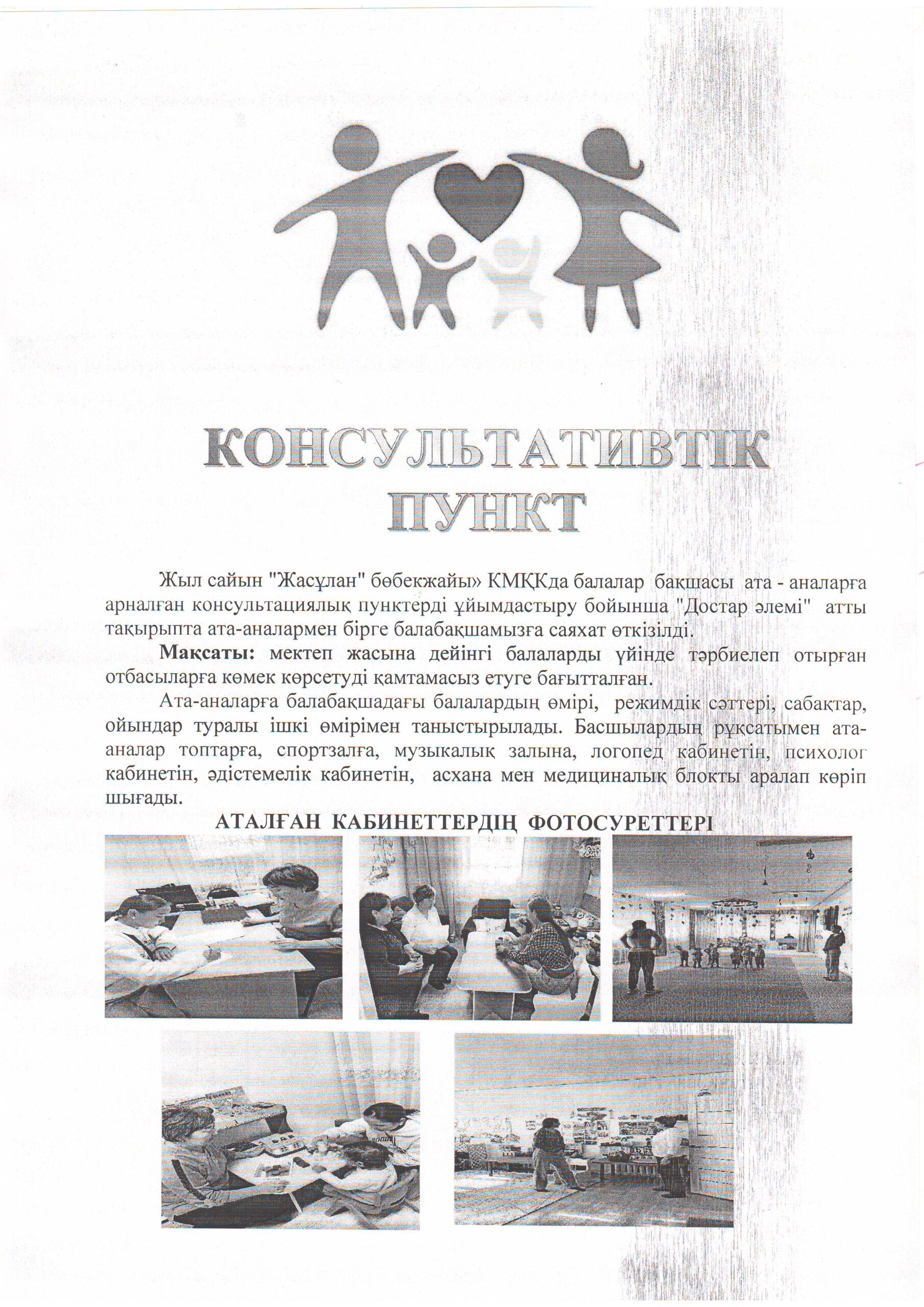 Мақсаты: мектеп жасына дейінгі балаларды үйінде тәрбиелеп отырған отбасыларға көмек көрсетуді қамтамасыз етуге бағытталған.