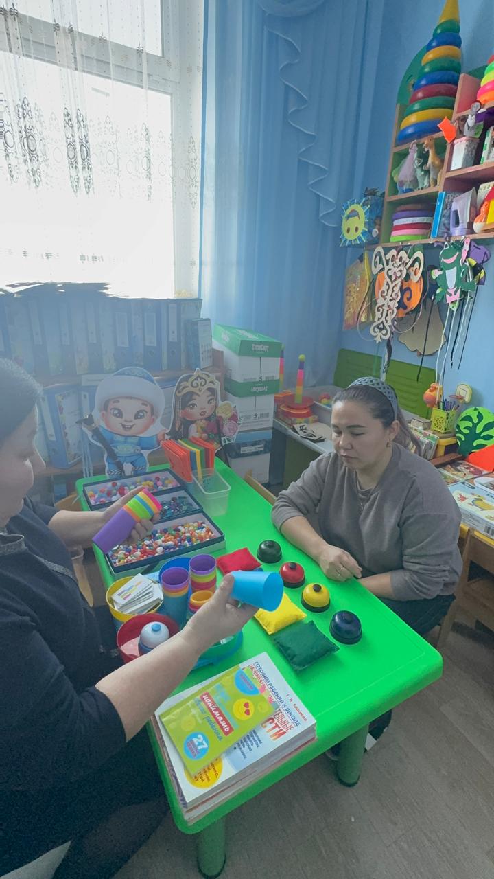 «Жасұлан» бөбекжайы» КМҚК балалар бақшасы ата — аналарға арналған кеңес беру пунктінің жұмыс жоспары бойынша «Балалардың таным деңгейін дамытуға арналған ойын түрлерімен таныстыру» атты тақырыпта ата-аналармен жеке кеңестер өткізілді.